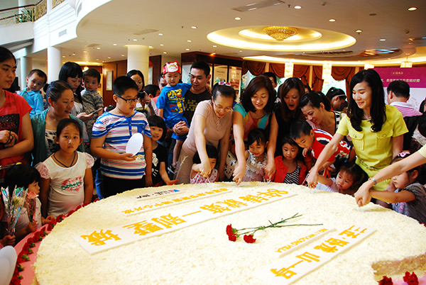10時(shí)許,等待已久的時(shí)刻終于到了。“下面我們將邀請(qǐng)幾對(duì)母子一起來(lái)切蛋糕。”主持人的話音剛落,便有母親領(lǐng)著小孩舉手報(bào)名了,幾對(duì)母子一起切出“第一刀”。隨著這“第一刀”下去,蛋糕特有的香甜味便在營(yíng)銷中心內(nèi)彌漫開來(lái),挑撥著人們的食欲。一邊等待的小朋友,饞得直咽口水;而拿到蛋糕的小朋友,則不顧形象地在媒體的鏡頭前大快朵頤,可愛的吃相令人捧腹。