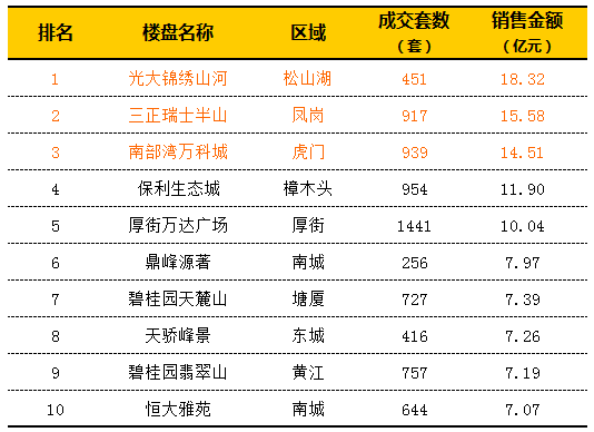2014年,這些外地“大鱷”房企勢頭相當猛,前10熱銷樓盤中,萬科、萬達、保利、碧桂園和恒大等占據(jù)半壁江山。據(jù)東莞中原提供數(shù)據(jù)顯示,今年光大錦 繡山河單盤吸金18.32億元排名全市第一,三正瑞士半山以15.58億元排名第二,南部灣萬科城項目以14.51億元緊追其后,排名第三。
