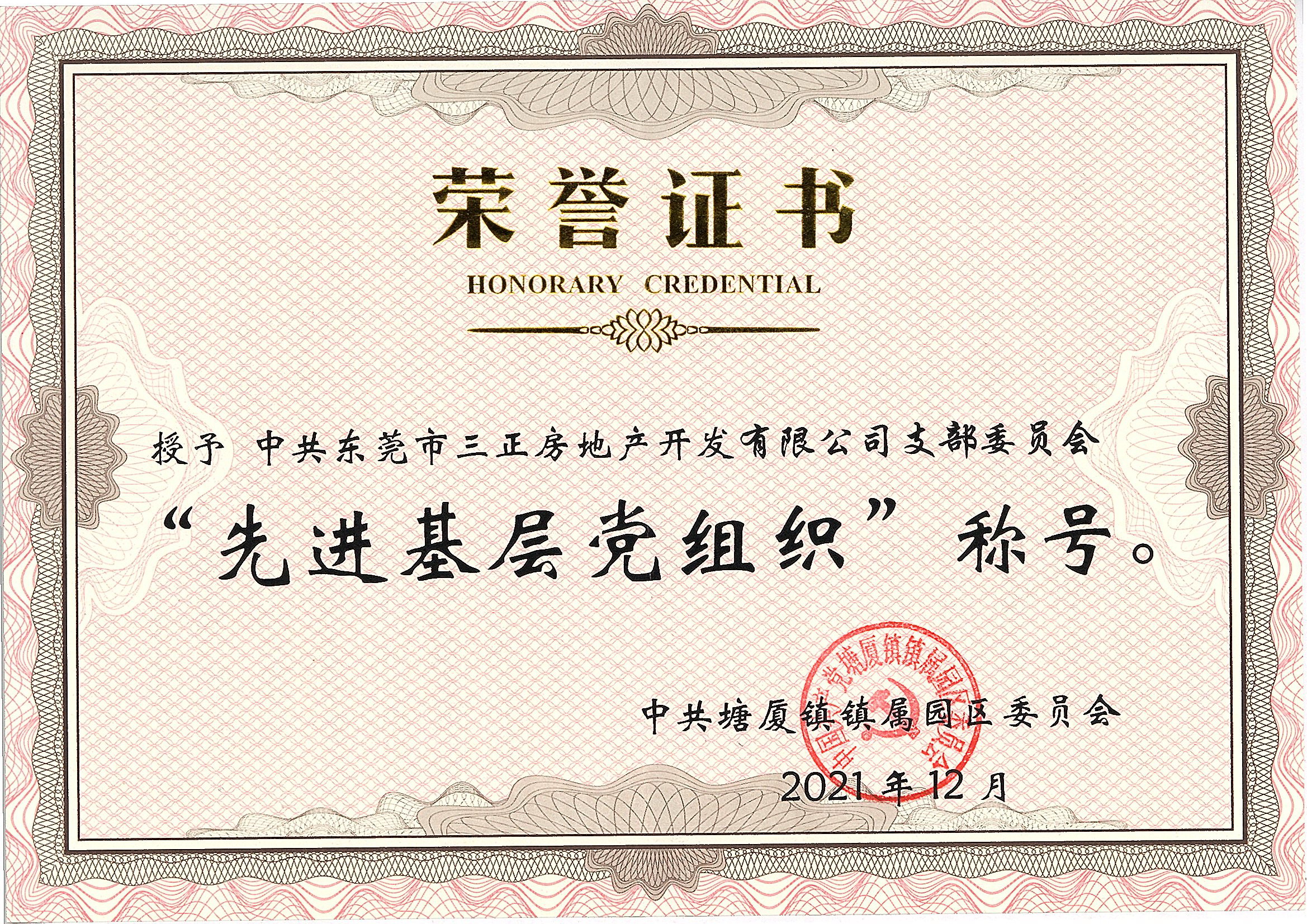 三正房地產(chǎn)黨支部獲得塘廈鎮(zhèn)2021年黨建工作先進(jìn)集體先進(jìn)“兩新”組織