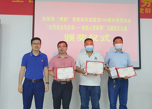塘廈鎮(zhèn)“兩新”黨組織“向黨表白寫出來(lái)——我的入黨故事”主題征文比賽揭曉,我集團(tuán)三名黨員獲獎(jiǎng)